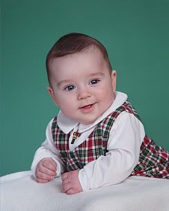 Christmas is on the way. I can't believe we've made it almost 6 months with the nursing. He is doing so well. We have started solids - peas and squash. He is doing well with swallowing and not much gagging, but he enjoys playing with it and making a mess. It is sa hoot. He also gets juice from a sippy cup and can do that pretty well.