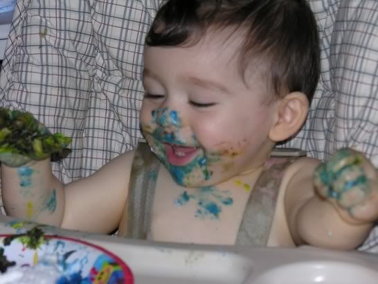 Amen!!!!!! We have kept him alive for a whole year and haven't made one trip to the emergency room (well, with him at least!!!) John Campbell is a year old. Where did the time go? We celebrated with a little family party. He got to visit with his cousins and play in his cake.