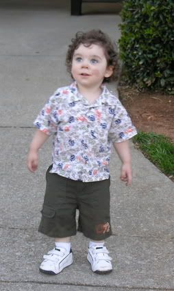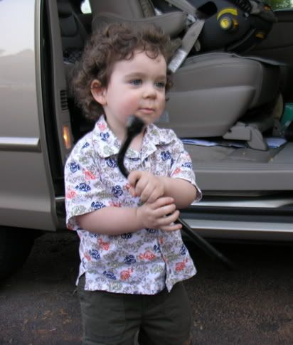 Here he is, trying to convince Daddy not to take the tire iron. Notice the pleading baby blues.